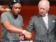 The King admits "trying to get a hang of it" while having a go at being a DJ during a visit to Manchester.